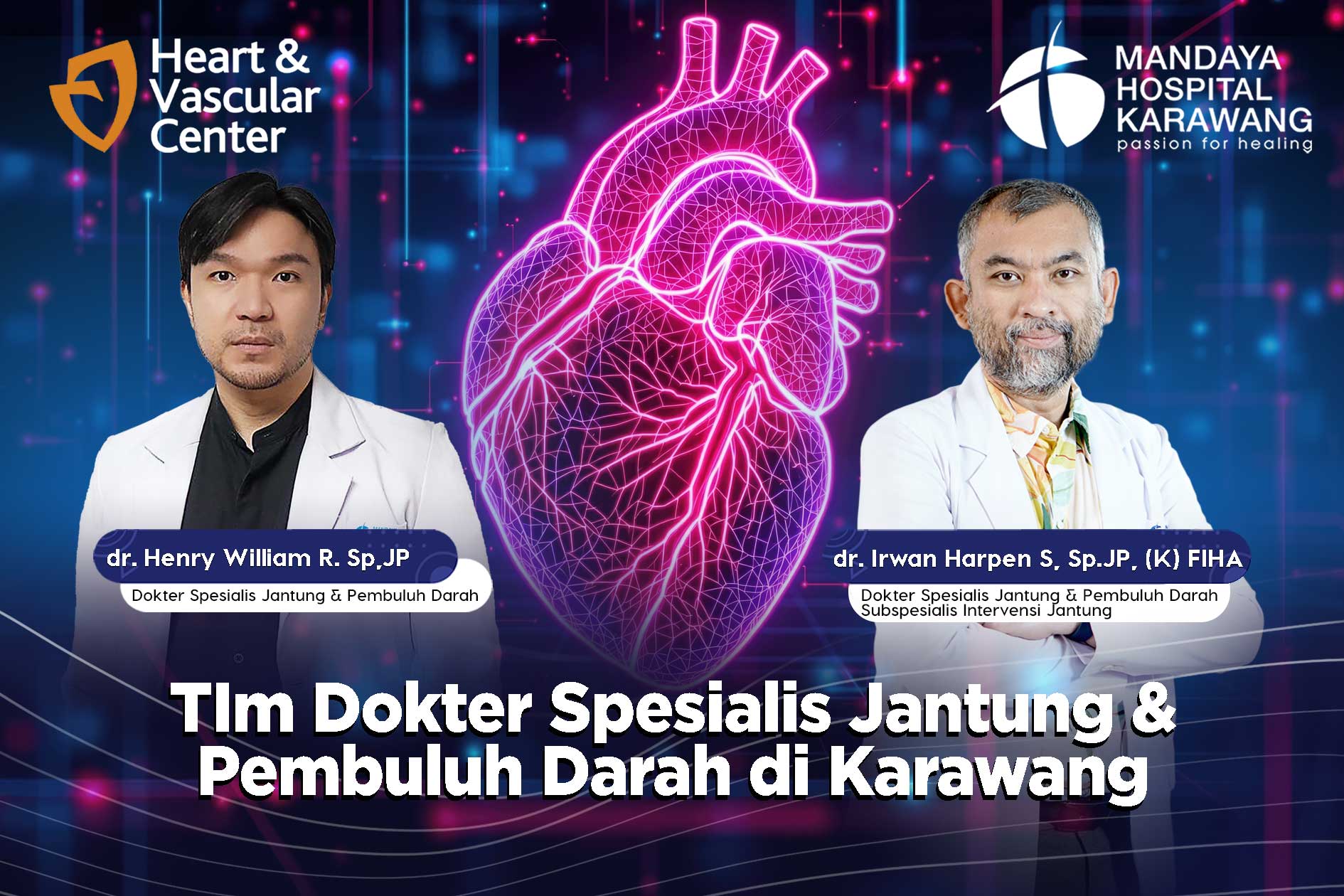 dr. Henry William Rawung, Sp.JP. (K), FIHA merupakan dokter spesialis jantung dan pembuluh darah yang pratek setiap hari di RS Mandaya Karawang yang berpengalaman dalam menangani berbagai gangguan kardiovaskular, gawat darurat kardiologi, penanganan & perawatan penyakit kardiovaskuler, konsultasi pencegahan & deteksi dini masalah kardiovaskuler, treadmill test, echocardiography (USG jantung), USG dropper (mengetahui gangguan aliran darah pada pembuluh darah), holter monitoring.