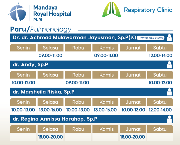 Buat Janji Dokter Profile Dokter Dr. dr. Achmad Mulawarman Jayusman, Sp.P(K) dr. Andy Sp.P dr Marsheila Riska Sp.P dr. Regina Annissa Harahap, Sp.P Buat Janji Dokter Kembali Ke Jadwal Download Care Doctor