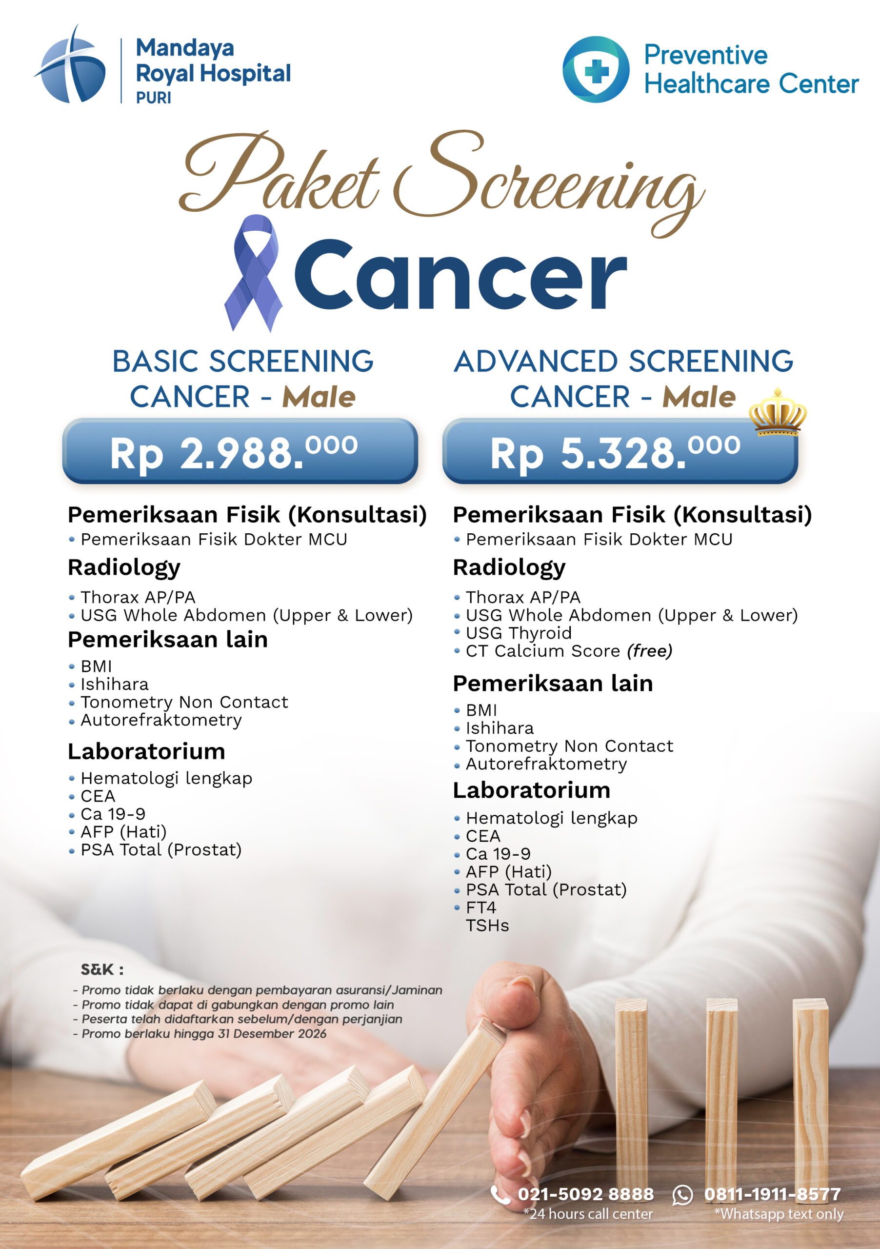 • Untuk Wanita : Thin Prep, Ca 15-3 & Ca 125