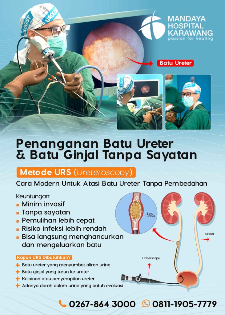 Layanan Urologi Mandaya Hospital Karawang menyediakan berbagai tindakan modern untuk mengatasi gangguan saluran kemih seperti batu ginjal, batu ureter, dan batu kandung kemih dengan pendekatan minim nyeri dan cepat pulih.