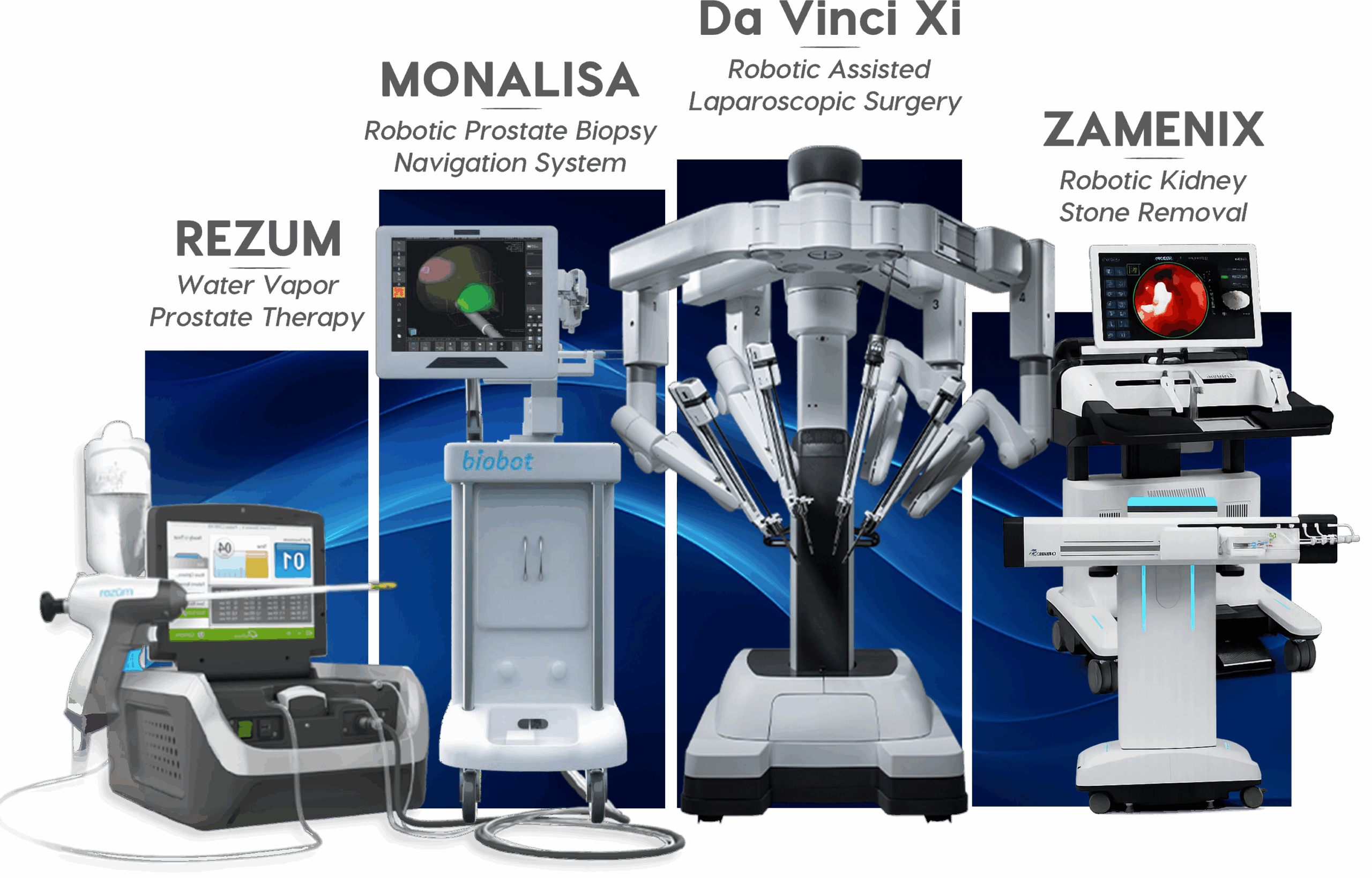 Platform bedah robotik canggih yang memungkinkan prosedur urologi kompleks dilakukan dengan sayatan kecil, kontrol presisi tinggi, dan pemulihan lebih cepat