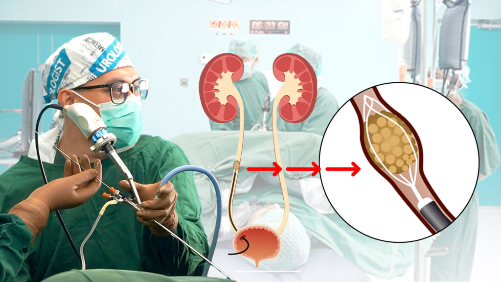 Tindakan dengan memasukkan alat kamera kecil ke saluran kemih untuk melihat dan menghancurkan batu secara langsung.