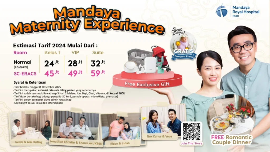Packages are available for both normal delivery (with epidural) and SC-ERACS (Enhanced Recovery After C-section), with prices starting from IDR 24 million. These options make Mandaya Royal Hospital Puri the ideal choice for expectant parents seeking comfort, safety, and world-class service throughout the birthing process.