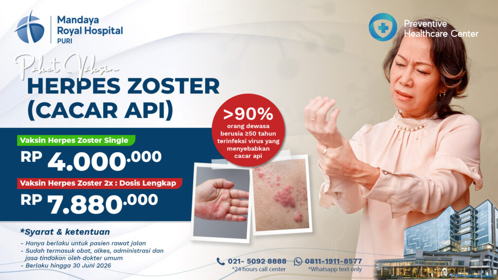 To prevent shingles, vaccination is highly recommended. Mandaya Royal Puri Hospital provides shingles vaccination services, available in both 1-dose and 2-dose options.