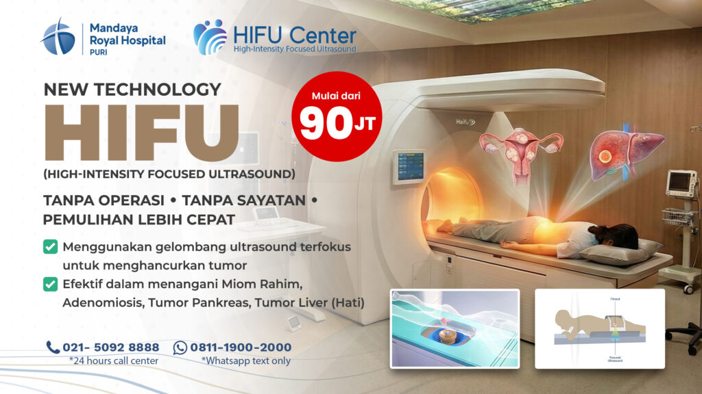 However, for patients who want to avoid surgery, a modern alternative is now available in the form of HIFU (High-Intensity Focused Ultrasound) technology at Mandaya Royal Puri Hospital. This method uses focused ultrasound waves to help treat adenomyosis in a non-invasive way.